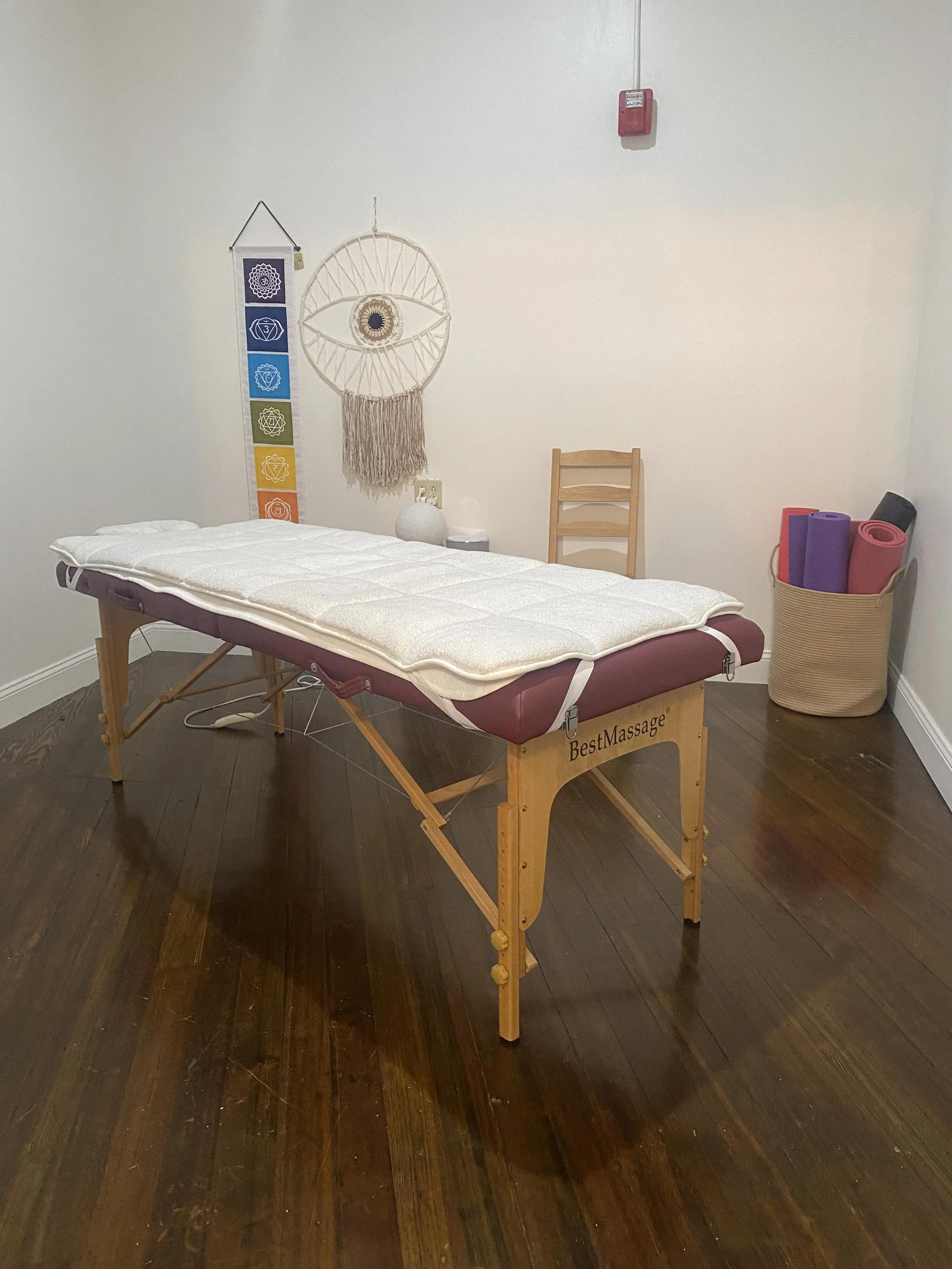 Discover the perfect room for your services. Rent a cozy room (12x12 ft) equipped with a massage bed, lights, desk, plants, and furnished if needed. Ideal for massage, readings, or offerings promoting well-being.